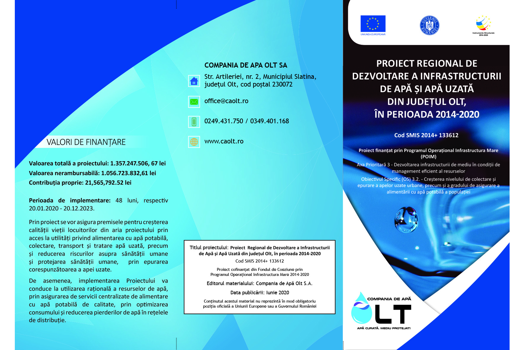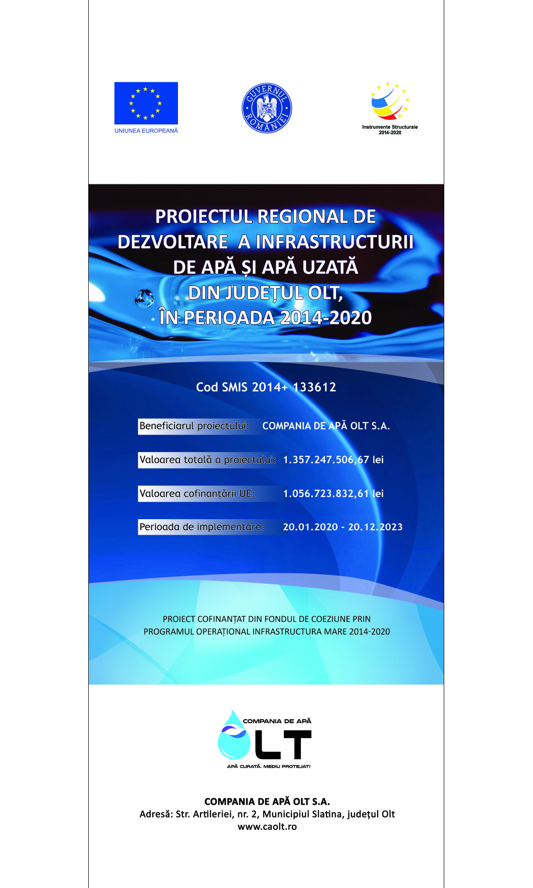 Compania de Apă Olt S.A. în calitate de beneficiar al Proiectului Regional de dezvoltare a infrastructurii de apă și apă uzată din județul Olt, în perioada 2014-2020
