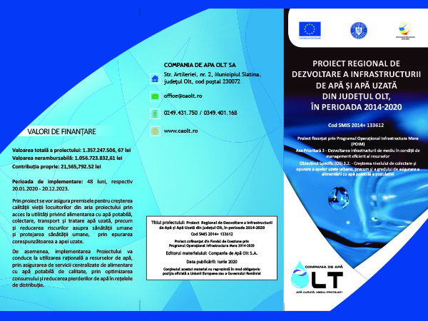 Compania de Apă Olt S.A. în calitate de beneficiar al Proiectului Regional de dezvoltare a infrastructurii de apă și apă uzată din județul Olt, în perioada 2014-2020 - etapa II