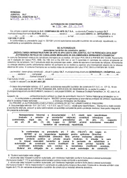 PROIECT REGIONAL DE DEZVOLTARE A INFRASTRUCTURII DE APĂ ȘI APĂ UZATĂ DIN JUDEȚUL OLT, ÎN PERIOADA 2014-2020 - etapa II